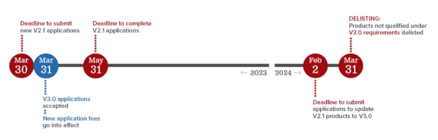 DLC在2022年12月2日發(fā)布了植物燈Hort V3.0最終版和市場(chǎng)抽檢政策,并已于2023年3月31日正式生效。對于V2.1列名產(chǎn)品的更新申請只能在2024年2月2日前完成,之后只能按重新遞交和收取費用!2024年3月31日之后不滿(mǎn)足V3.0的產(chǎn)品將下架!