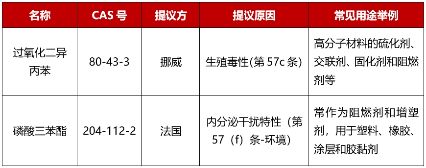 2024年3月1日,歐洲化學(xué)品管理局(ECHA)對2種潛在的SVHC候選物質(zhì)展開(kāi)公眾咨詢(xún),此次公眾咨詢(xún)期持續到2024年4月15日,利益相關(guān)方可在此期間向ECHA提交反饋意見(jiàn)。ECHA將會(huì )對公眾提交的反饋意見(jiàn)進(jìn)行評議,最終確定正式納入第31批SVHC候選清單的物質(zhì)。