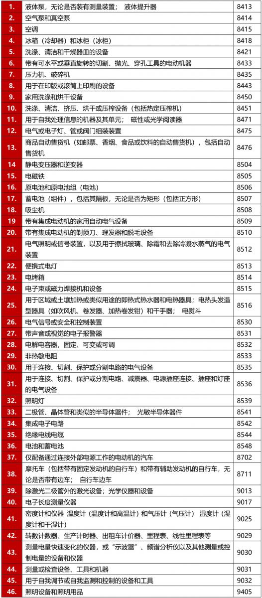 豁免的產(chǎn)品如: