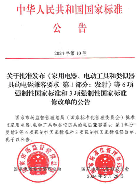 2024年5月28日,國家市場(chǎng)監督管理總局(國家標準化管理委員會(huì ))發(fā)布2024年第10號公告,批準6項強制性國家標準和3項強制性國家標準修改單。