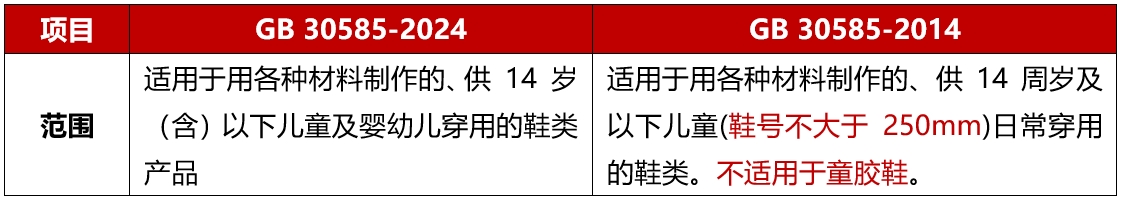 新標準適用范圍刪除了童鞋鞋號不大于250mm的限制,且適用于童膠鞋。
