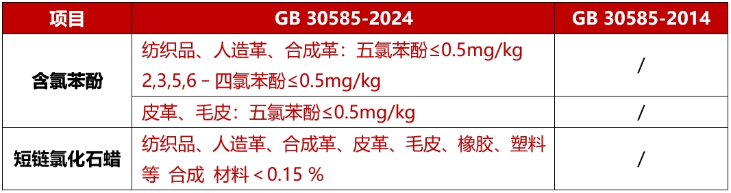 3. 新增了含氯苯酚、短鏈氯化石蠟限量物質(zhì)要求