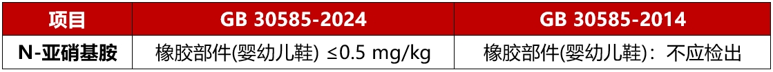 明確了N-亞硝基胺的限量要求為≤0.5mg/kg,試驗方法由GB/T 24153修改為ISO 19577:2019。