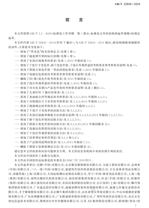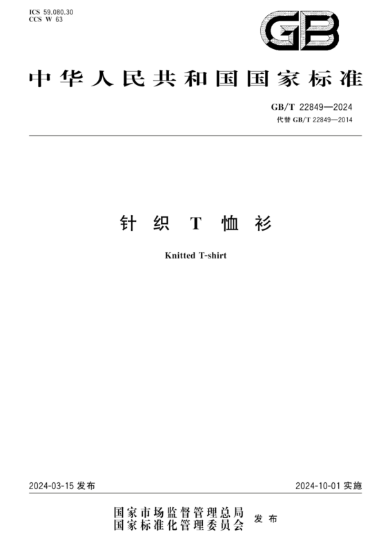 標GB/T 22849-2024《針織T恤衫》于2024年3月15日發(fā)布更新,將于2024年10月1日正式實(shí)施。