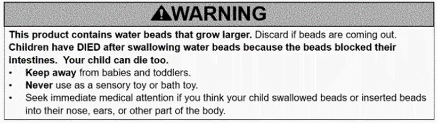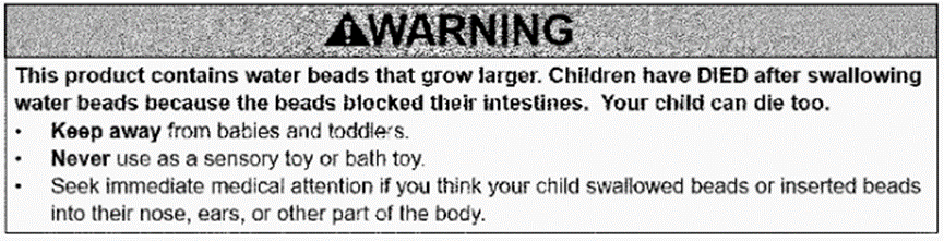 1. 水珠玩具及其包裝應有以下警告: