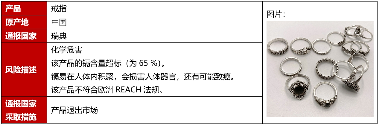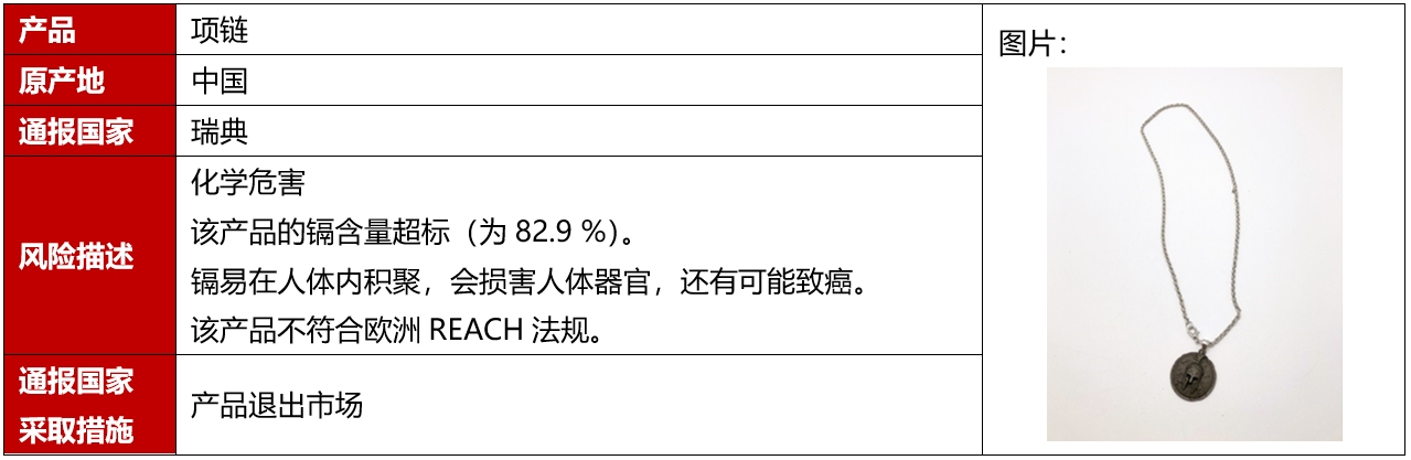 2024年10月,歐盟、美國、加拿大和澳洲共發(fā)生10例飾品召回案例,這些召回發(fā)生在歐盟,且都是因為存在化學(xué)危害而被召回的。