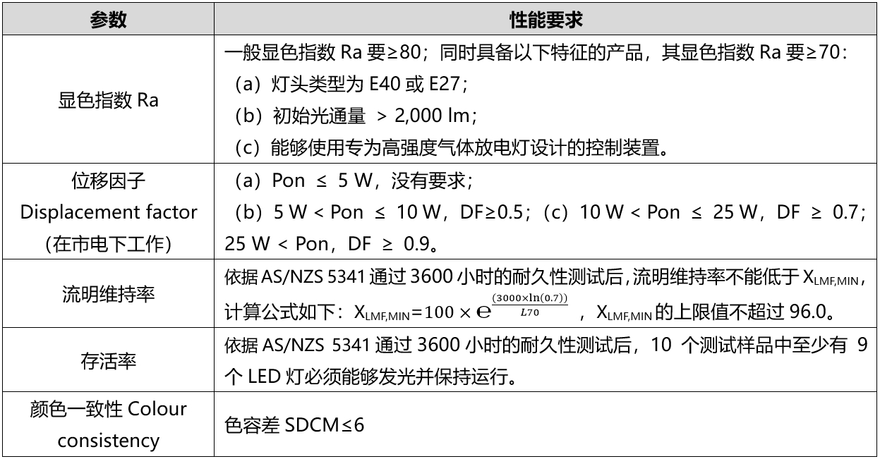 • 產(chǎn)品注冊需要提交相關(guān)信息和符合最低能效要求的MEPS測試報告(包含標準規定的3600小時(shí)的流明維持率和耐久性測試);