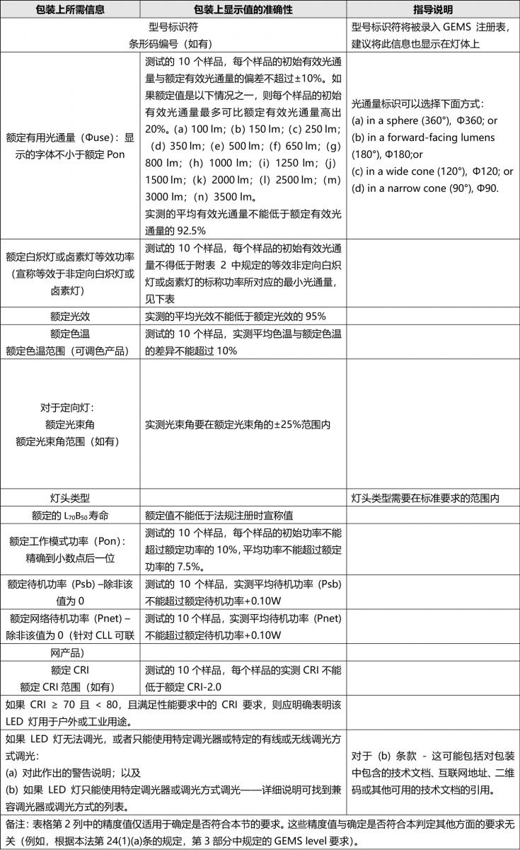 b)如果空間能顯示兩個(gè)值,則必須顯示額定有效光通量和相關(guān)色溫