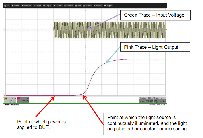 啟動(dòng)時(shí)間是指給產(chǎn)品通電到光源持續發(fā)光的時(shí)間。帶有集成控制器(例如運動(dòng)傳感器,光感器,無(wú)線(xiàn)控制,待機模式或可連接功能)的產(chǎn)品可禁用和繞過(guò)這些控件進(jìn)行測試。