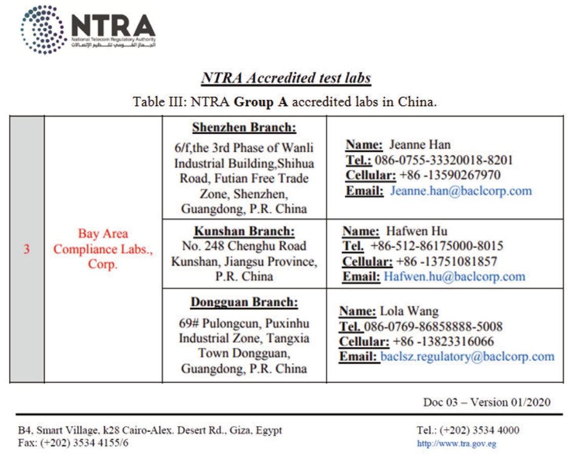 BACL 埃及NTRA認證優(yōu)勢: