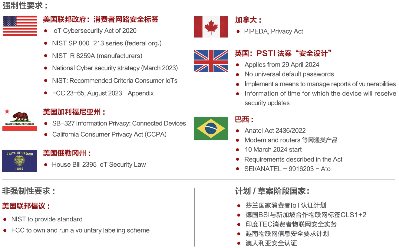 隨著(zhù)歐盟、美國、加拿大、英國等全球主要經(jīng)濟體強制網(wǎng)絡(luò )安全法規加速落地,測試認證已成市場(chǎng)準入核心門(mén)檻。構建數字信任基石,企業(yè)須以認證為盾突破合規壁壘,更將其轉化為搶占國際市場(chǎng)的競爭優(yōu)勢。